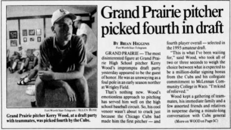 Written by Bruce Weirauch, June 1, 1995 Cubs select Kerry Wood (born June 16, 1977) the 4th overall pick in the MLB draft. He spent three years...