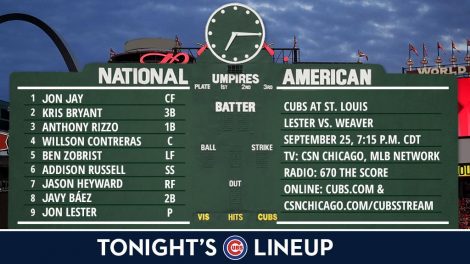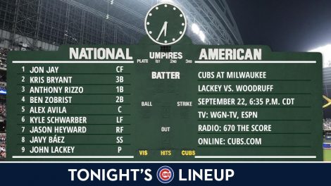 A combination of six Cubs victories and losses by the Brewers or Cardinals will result in the Cubs clinching their second consecutive NL Central...